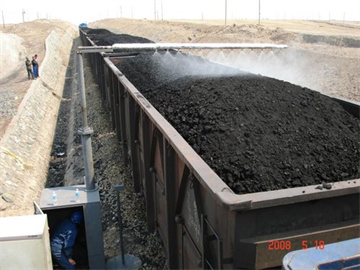 铁路煤炭运输抑尘剂主要是由天然植物纤维改性制成的生态粉状煤炭抑尘产品。该抑尘剂溶于水后,其中的天然植物纤维的网状结构,相互搭裢、附着粘结。当将其喷洒至煤炭表面时,这种天然植物纤维的网状结构将煤粉粘连在一起并迅速在30秒钟凝结,形成散布似的覆盖层,从而控制煤粉,使其无法脱离形成扬尘。当抑尘剂干燥后,抑尘剂又与煤粉形成一层抑尘壳,能有效地固定住煤粉。使该抑尘剂获得很好的抑尘果;这确保了抑尘效果,而且保证了对煤质不会有负面影响,对接触到人和动物不会有任何危害,对设备设施不会造成腐蚀,对周边环境不会构成二次污染该抑尘剂为多种高分子材料聚合的乳液经干燥后制成固体粉末。